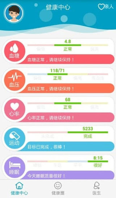 医帮一是一个移动健康服务平台,其整合智能手环、智能血压计和血糖仪等健康检测终端,并直接与专业的医疗机构相连接,为用户提供高效实用的移动健康服务,是一个不可多得的移动私人医生!