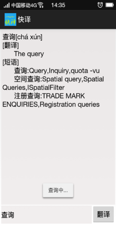 一款英汉词语互译的小软件,支持中英文长句翻译; 也可查询汉字、词语全拼; 可显示常用英语短语; 不过需联网查询