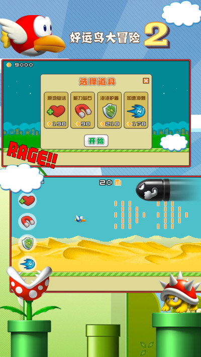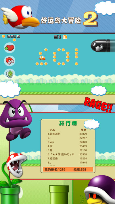 《好运鸟历险记》是一款益智休闲手机游戏,玩家需要不断控制点击屏幕的频率来调节小鸟的飞行高度和下坠速度,让小鸟顺利地通过各种障碍,飞行更远的距离,游戏中可使用道具获取更多金币、快速通过障碍、复活等。史上最虐心游戏续集,不玩你就OUT了!