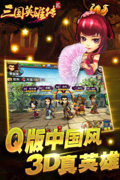 《三国英雄传2》是一款好玩永不过时的3D真英雄动作类卡牌手机网游,游戏是以三国为背景的,游戏中的人物设计的都是非常Q版卡通的,你可以和游戏中的角色进行擂台夺旗!