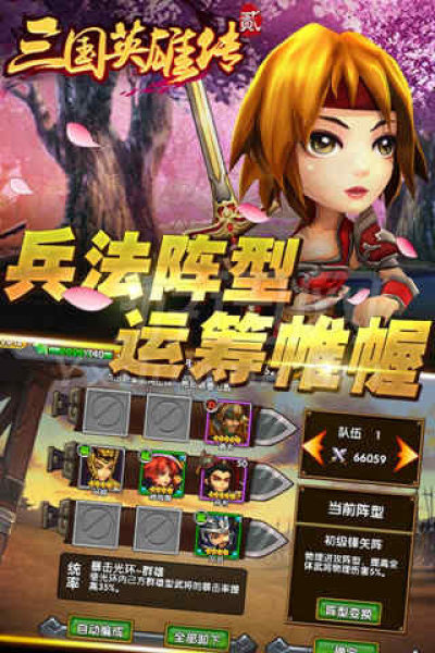 三国英雄传2是一款根据同名的pc游戏改编移植而来,游戏将原作的优秀设定全部保留了下来,在本作中,加入了非常多的卡通Q版设定,各种可爱的武将为玩家们提供了超多不同的阵型选择,非常值得一玩。