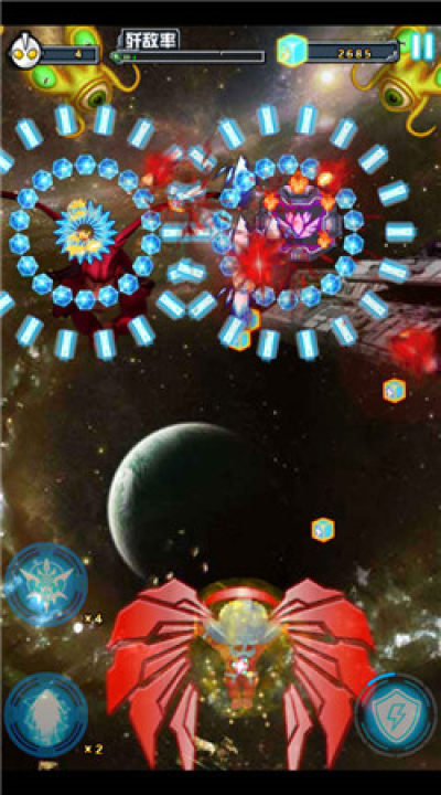 这是一款非常好玩的科幻奥特曼飞行射击游戏,本作中的战机全部是奥特曼形象,玩家可以控制不同的奥特曼在银河之中展开攻击,消灭眼前所有的敌人,保护宇宙的和平。