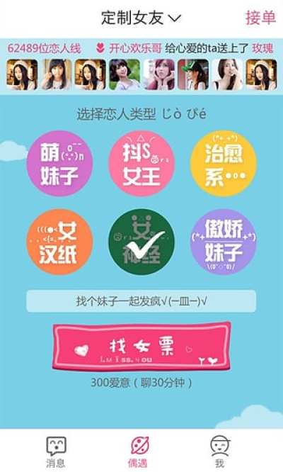 *首款虚拟恋爱社交应用,给用户提供24小时的贴心恋人匹配服务