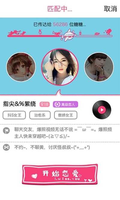 1.通过标签筛选,发起恋爱请求,即时匹配符合条件的在线恋人