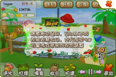 这是一款玩法与内容都和QQ牧场+农场非常相似的手游,游戏采用的是3D游戏画面,玩家将在游戏中通过不断的培养动植物,来经营自己的牧场,不断的完善牧场,制造出更多的农作物和动植物。