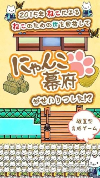 猫咪幕府是一款全新放置型养成游戏,游戏故事背景描述在 2015 年,猫咪为了实现猫咪盛世而成立了幕府组织,并分类成会在农田耕种的农民猫咪,会努力赚钱的商人猫咪,以及支撑幕府的武士猫咪,无数的猫咪们在幕府成立之后蜂拥而来,使得这个幕府组织愈来愈壮大……