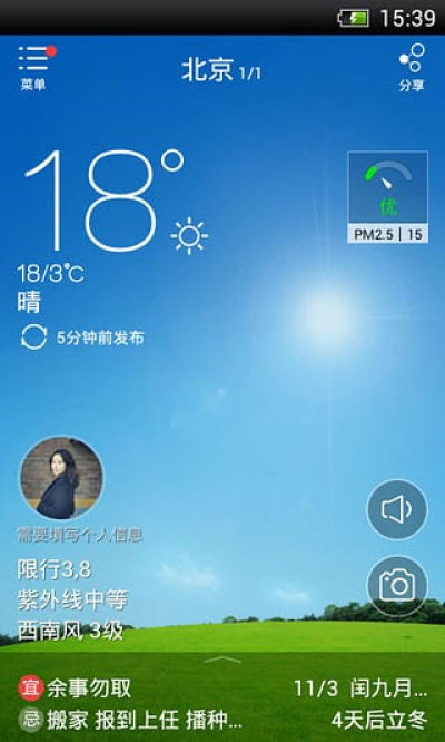 天气准确、更新快、含PM2.5及天气预警、覆盖城市广。