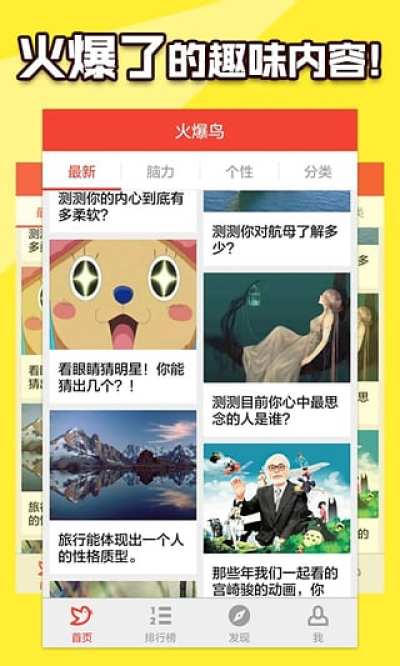 火爆了的趣味内容社区!涵盖了各种好玩的趣味测试、脑力测试、趣闻盘点、趣味图文!添快乐,涨姿势!跟无聊说白白!轻松分享超有趣超挑战的内容给朋友,引爆你的社交网络!
