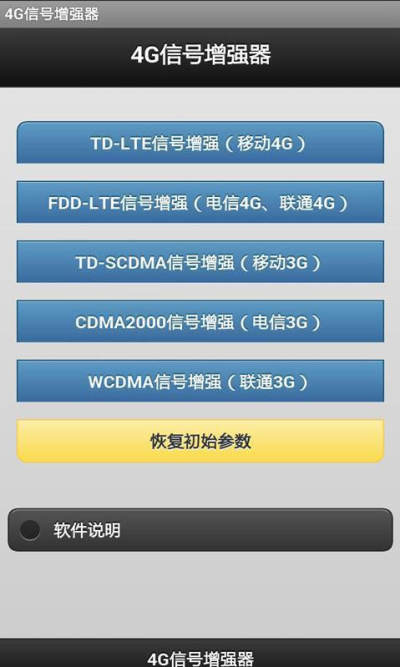 《4G信号增强器软件》通过解除厂家网络锁定和修改通信模块参数,优化4G/3G网络,在不增加发射/接收功率和手机辐射的情况下,增强网络信号。移动用户请选择“TD-LTE信号增强”,电信、联通用户请选择“FDD-LTE信号增强”。官方出品,无广告、永久免费。