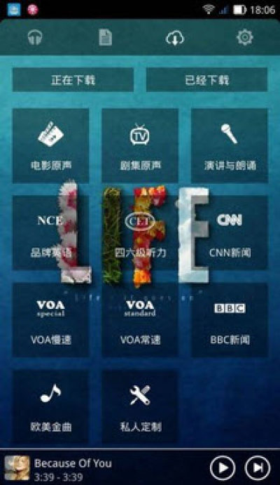 1.大量有趣英语听力材料,并且不断更新:电影原声、美剧原声、演讲、TED,VOA,CNN,新概念英语,四六级听力真题...