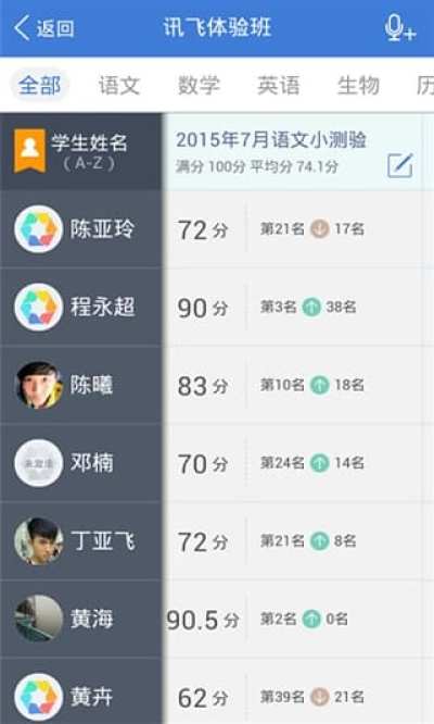 成绩管理,提供手动、语音录入学生成绩,自动生成班级成绩分析报表。