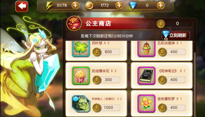 公主商店里贩卖的都是好东西——稀有伙伴的灵魂石、中高级材料、公主礼物......