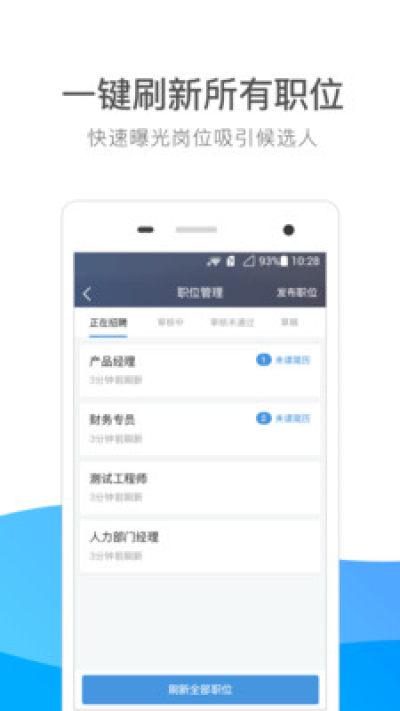 【职位管理】免费发布职位,暂停、修改、结束由你控制,不论有多少在招职位,均可一键刷新,App独享此功能!