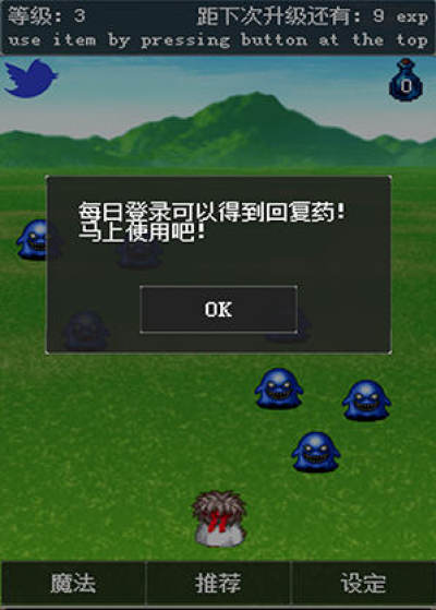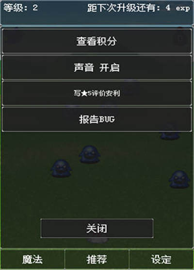 以往玩RPG游戏练级是不是特痛苦?这是一款爽快感十足的放置型游戏,1级的时候只能虐虐史莱姆,6级时可以打蝎子,魔法也从最简单的火球和飓风开始,逐渐变得复杂,最后变成全屏攻击的火凰石爆……最后可以屠龙哦!加油!