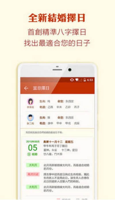 1、专业喜庆择日:选个好日子结婚、开市、旅行,事事顺心!