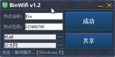 开启软件后,设置热点名称和密码,然后点击启动按钮,提示成功后,你只需要打开手机等一切可便携设备连接WIFI冲浪就行了。