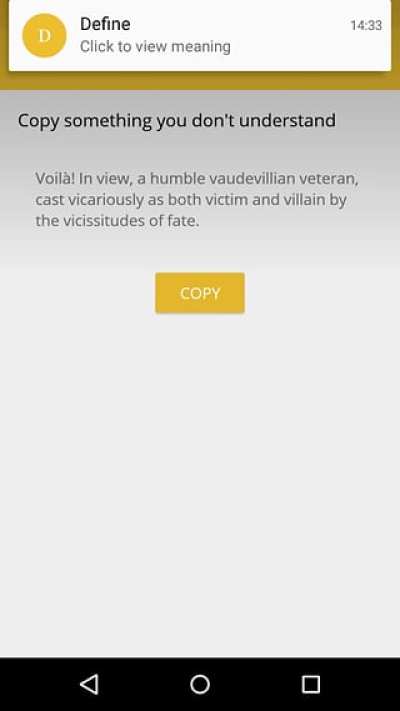 《离线词典 Define》应用使用起来比较轻松,直接选定单词然后点击即可了解含义,系统级的离线词典,将允许你从任何地方复制单词来了解含义、同义词以及使用方式。目前支持"Wordnet Dictionary(离线)", "Livio Wiktionary(离线)", "Urban Dictionary(在线)"这几个词典。