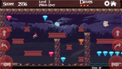 Dangerous Dave in the Deserted Pirate’s Hideout《危险戴夫在遗弃匪窝》是被誉为“FPS 教父”的约翰·罗梅罗(John Romero)在移动端上复刻的一款 1990 年的经典横版闯关游戏,其画面、操控以及人物的动作都是沿用 80 年代末 90 年代初的风格——DOS 版的画质,采用虚拟按键进行操作,缓慢带点儿僵硬的动作…