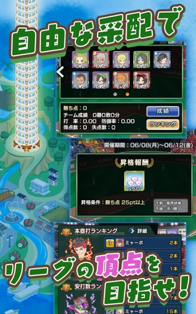 《棒球收集》是可以自动进行比赛、即使是忙碌的人都能轻松享受的新感觉棒球社交游戏。玩家在游戏中充当棒球队监督一角,通过网罗选手进行对战取胜,得到经验值和使选手升级。除了在每一个地区登场参加比赛获胜、在游戏内获得经验值升级选手以外,合成选手等对队伍进行强化也是很重要的哦!