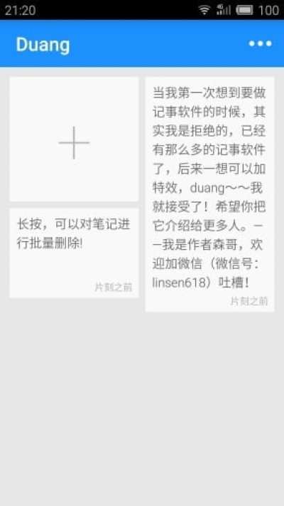 Duang这款APP和同名的网络热词并没有什么关系,它只是一个简单实用的记事本。同类型的软件很多朋友都在使用印象笔记,而这款APP相对于它最大的特点就是稳定性好,BUG比较少。