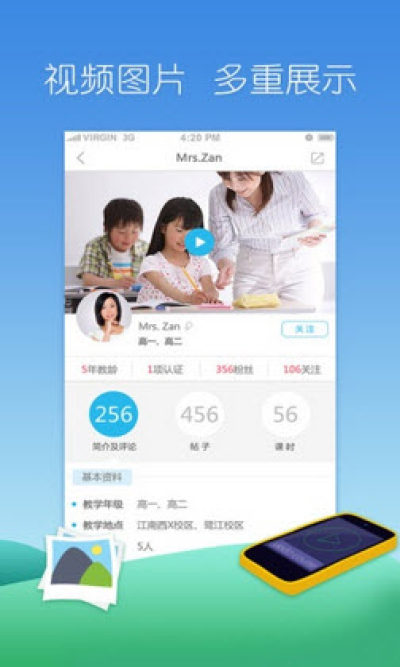 【形象维护】个人信息、视频介绍、相册等多维度展示老师个人风采,随时预览自己主页