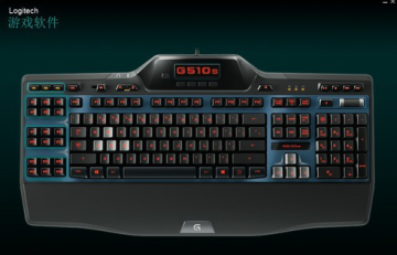 在驱动的首页,们能看到罗技G510s游戏键盘的全貌,并且画面中键盘的显示屏与G键周围有一圈蓝色的光在呼吸闪烁,提示用户这些部分可进行自定义设置,点击蓝光范围内的区域就可以直接进入相应的设定页面。