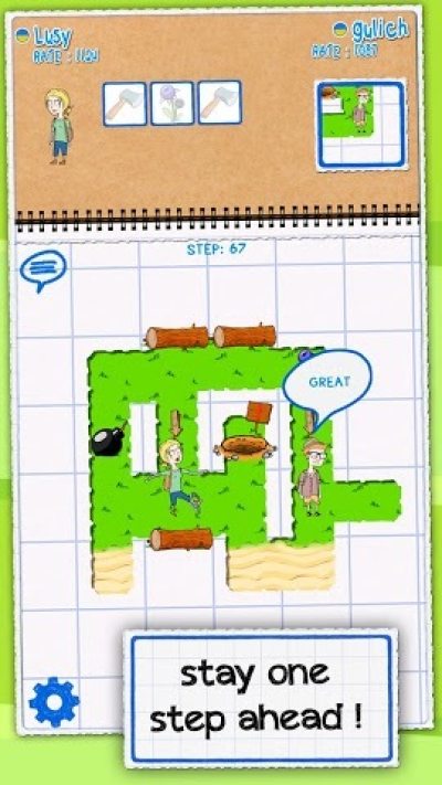 游戏的目的是要找到解开船锁的钥匙,游戏前会先让你看到完整的地图样貌,然后游戏中会有7X7的空白方格,寻宝的路线需要由玩家让游戏主角在方格中形走,来让部分路线出现在画面,慢慢的找出钥匙位置,并走到船来解锁完成任务。游戏开始时,就是一个空白的方格图,点选空格就能让角色往前后左右走。