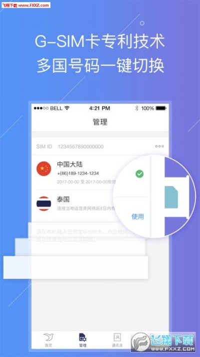 基于三项高新技术核心专利,实现了世界各国手机用户无论出行何地,无需换卡,即可基于本人手机选 购出行目的地国家运营商的通信服务,平台把用户选订的服务号码远程写入用户手机,满足用户以当地运营商的廉价资费尽情享用境外通话和高 速移动上网的需求。实现出国通信资费与当地资费一致甚至更加优惠,还会有人在出国期间关机放弃正常通讯和移动上网服务吗?这将是年交易 额超万亿规模的巨大刚需市场。