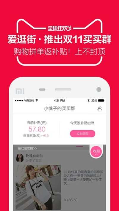 * 爱逛街推出双11买买群,购物拼单返补贴!补贴金额上不封顶,快抢先试玩!