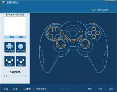 连接手柄,打开左游手柄助手2,首先要新建游戏脚本,否则关闭软件或者重启电脑之后,已设好的模拟按键需要重新设置