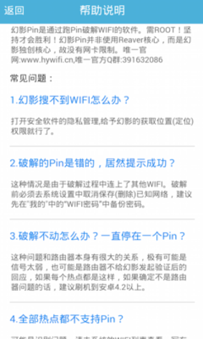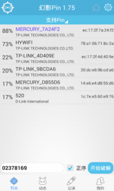 想必对WIFI破解有研究的机油们都造,目前真正能破解WIFI方法中,跑Pin破解WIFI是最高端有效的方法了,因为此方法无视密码难度,但多年以来此方法得有电脑、外置网卡,很不方便,而幻影Pin使用幻影开发的核心,仅需要一部已ROOT的手机,轻轻松松跑Pin破解WIFI,由于非采用Reaver核心,所以没有网卡限制。幻影Pin绝对是一款破解WIFI的神器。