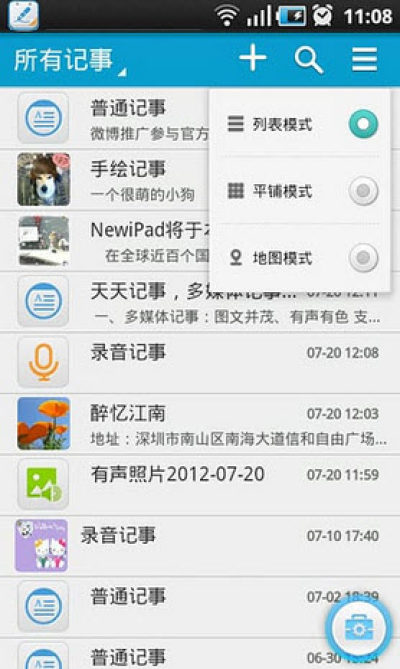 随心创作多媒体记事内容,进行图文混排、手绘记事、拍照记事和录音摄像等,还可加上漂亮的背景,拍摄生动有趣的有声照片。