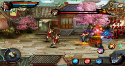 - 游戏战斗画面,点击左下方的按钮控制角色移动