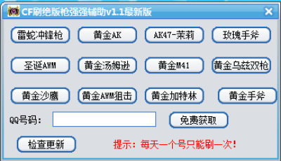 CF刷绝版枪强强辅助是一款免费的CF刷绝版枪辅助,主要可以帮助用户免费获取雷蛇冲锋枪、黄金ak AK茉莉、玫瑰手斧、黄金M41 、黄金汤姆逊等实用枪支,需要的朋友可以免费下载使用。