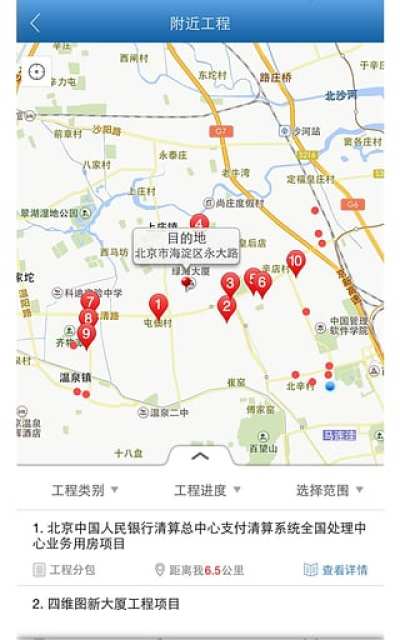 3、附近工程:打开内置地图功能,附近工程一览无余,更有“一键导航”轻松带您到达工地;