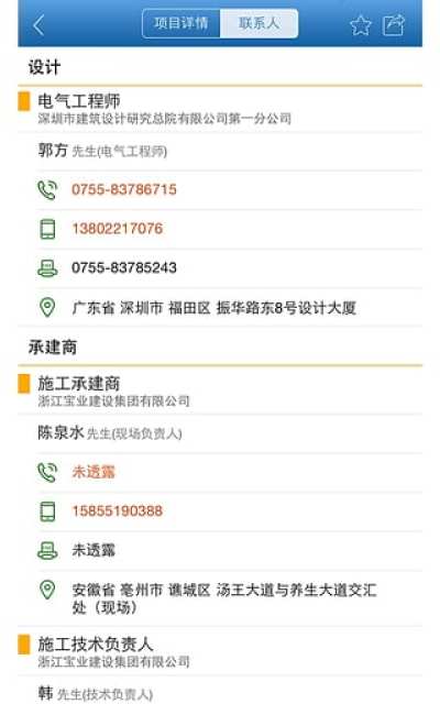 1、口袋办公:手机端随时随地查看最完整工程信息,即时拨打联系人电话、收藏、分享、写业务笔记;