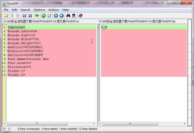 TextDiff是一款简单实用的文本内容比较工具,可以帮助用户快速比较文件及文件夹的内容区别,相同和不同部分可用不同的颜色显示,更容易区分,操作简单,功能实用,有需要的朋友可以下载体验一下。(由于是开源软件,只要您愿意,可以完全按照自己的要求把它改造得更加强大)