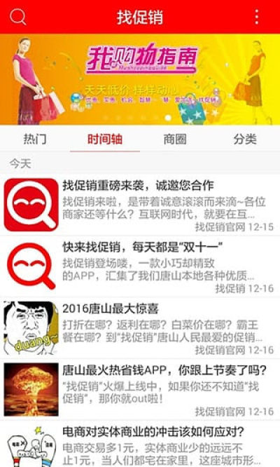 用户能方便直观的像看新闻一样浏览到最新最热的促销信息,实时更新,可根据用户自己不同的关注点按照热门程度,发布时间,各大商圈进行浏览,方便快捷。