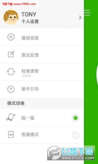 3.独有双模传输模式:普通模式,一方发送,一方接收,简单明了;摇一摇模式,两部手机同时摇一摇即可自动连接进行文件互传