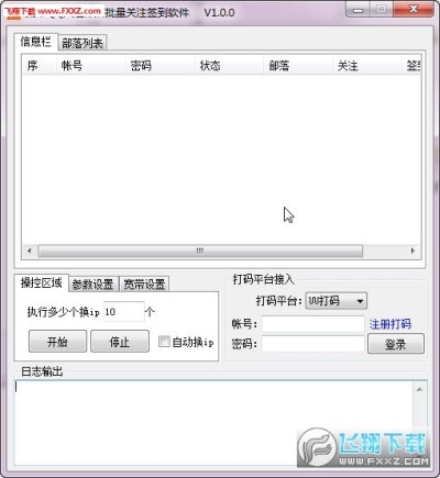 QQ兴趣部落刷关注软件是一款适用于QQ兴趣部落的营销工具,可支持批量刷关注和批量自动签到功能;支持自动换IP、设置线程数,接入了UU打码、超人打码和若快打码三个打码平台,需要的朋友快来下载吧!