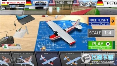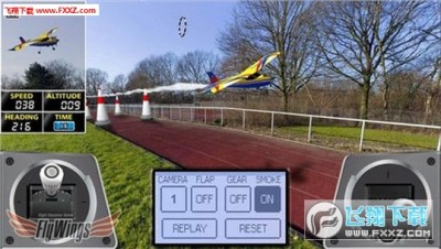 游戏就像玩真的遥控飞机一般,屏幕上一左一右就是控制杆,左边是油门和控制尾翼方向,右边是控制左右两边的主翼。飞机起飞,只要将左边控制杆往上推油门,右边的往下拉让飞机爬升。飞机在天空中就可以自由飞翔,飞机撞落地面一样会撞烂的。画面上的建筑物是存在的,所以飞机飞进去是会撞机的。四款飞机操控: 游戏画面效果十分好,以一个操控者的主观角度表达,画面会一直跟着飞机,会有 Zoom In,Zoom Out,仰望的效果。飞机有四款,其中包括一架直升机。场景方面,是真实的 360 度场景景,有两个场景选择,一个在平地,另一个在山上。按 Menu 键就可选择飞机和场景。