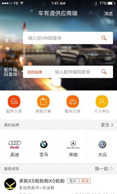 车有道汽配整车件查询采购平台专注汽车配件的信息查询、需求发布与供应匹配的线上交易,为汽配厂商、经销商提供一个VIN、配件编码查询及有海量订单的汽配交易平台。