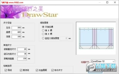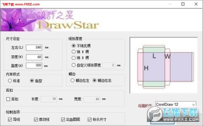 DrawStar X4又称之为设计之星,是一款专为croeldraw用户打造的包装盒设计插件,使用DrawStar X4可以方便用户快速绘制出不一样的包装盒、信封、手提袋以及书本等样式,它提供了实用的控制参数,用户不需要复习专业的设计和刀模制作知识,只需要动动鼠标便可以制作出需要的刀模,可以说是美工必备的利器,同时还拥有备料提醒的功能。