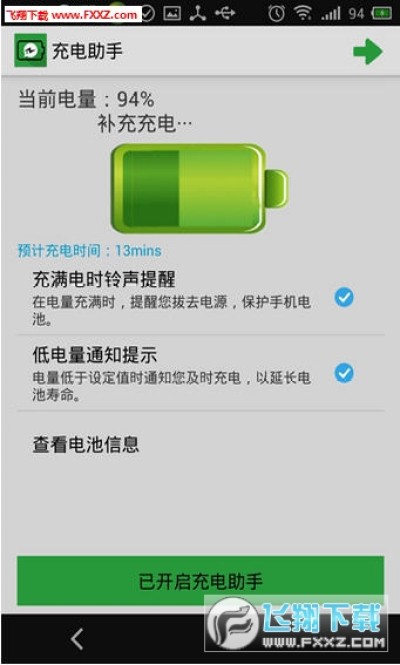 充电助手(Charge Helper):这款软件是一个简单的手机充电助手,在充好后能给你铃声提示,也能将你的手机转换成防打扰等模式,让你的手机能快速充电。算是比较实用的工具,因为手机充满电后如果继续充电,对手机电池也是一种伤害。有了这款软件在您充电充满时给予提示,这样对电池也是一种保护和延长电池使用寿命!