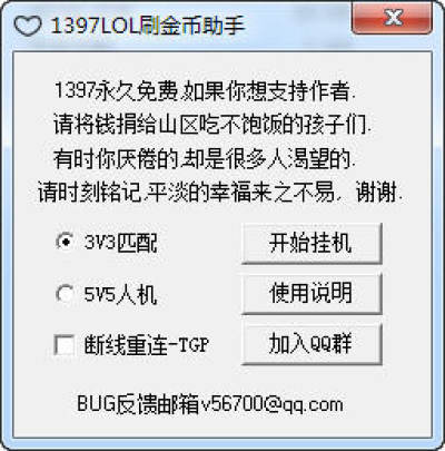 1397LOL刷金币助手是继海克斯hex刷金币辅助软件之后又一个免费安全的LOL刷金币辅助软件。如果撸友们觉得自己的LOL金币不够用,可以用它来挂机刷金币。
