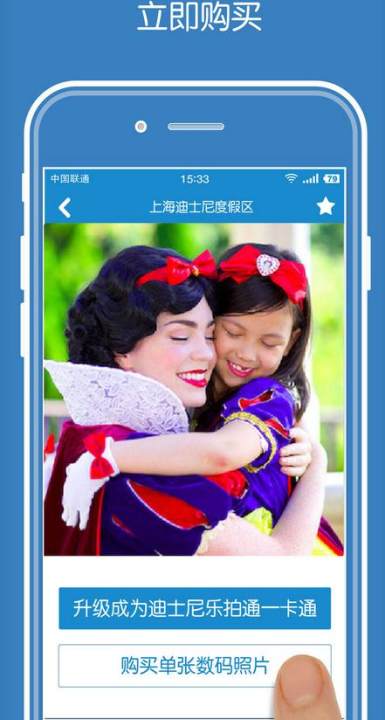 迪士尼乐拍通应用程序会自动显示您在上海迪士尼度假区游玩时的精彩照片。