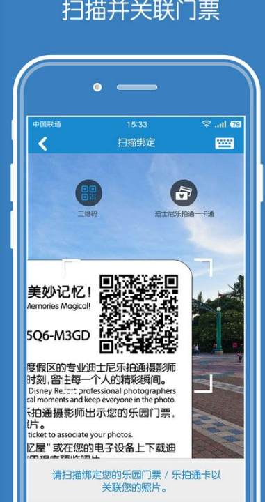 • 将您的上海迪士尼乐园门票或迪士尼乐拍通卡绑定到您的账户。