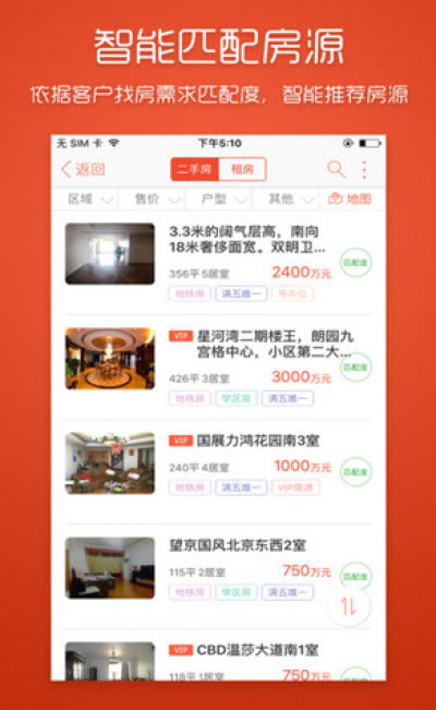 1.智能房源匹配:依据客户找房需求,自动计算房源与客户预期的匹配度,从而智能精准的推荐房源;