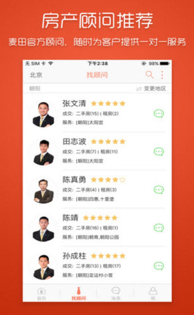 2.房产顾问推荐:麦田官方顾问长期在线,随时为客户提供专业的一对一服务;