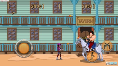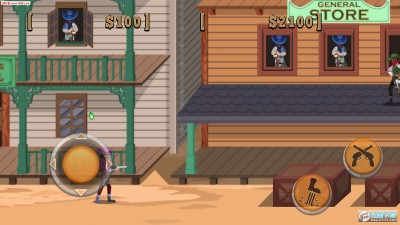 美国西部牛仔这个游戏的画面不是很好,不过游戏很有街机感,游戏的一些特点能让人联想到不少比较知名的经典游戏。